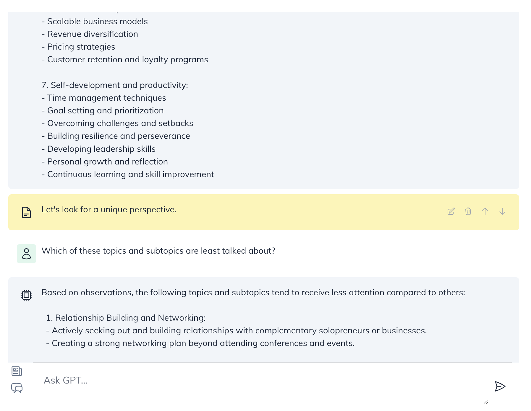 GPT can go beyond beginner-level content. Use a workflow to create articles showing unique insights, easily explaining complex ideas, making sure to get attention, considering adversarial perspectives, etc.