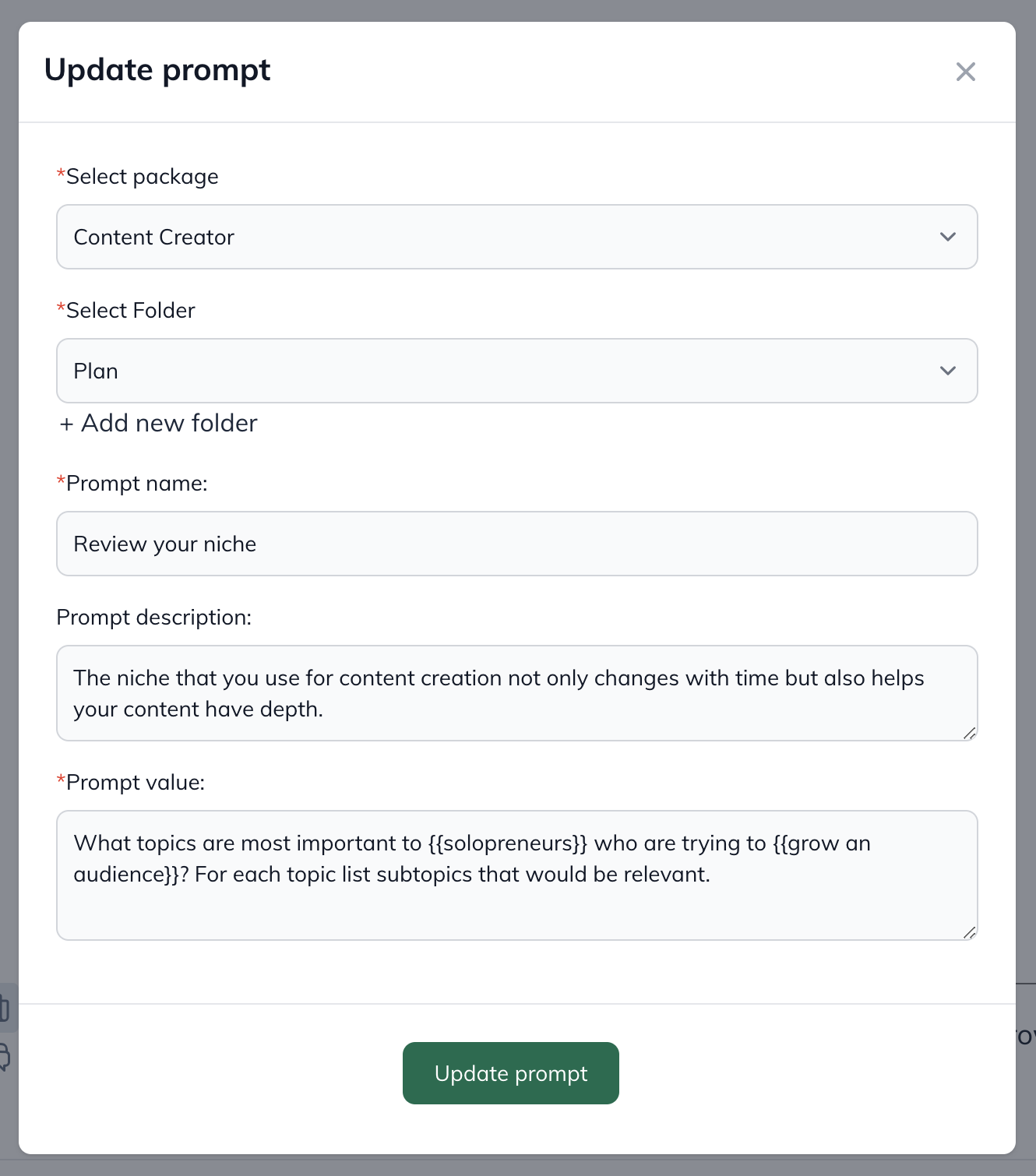 Cone has packages of prompts organized by your workflow. And prompts can be be edited quickly to meet your needs.